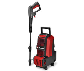 man washing a car with a high pressure cleaner from Einhell