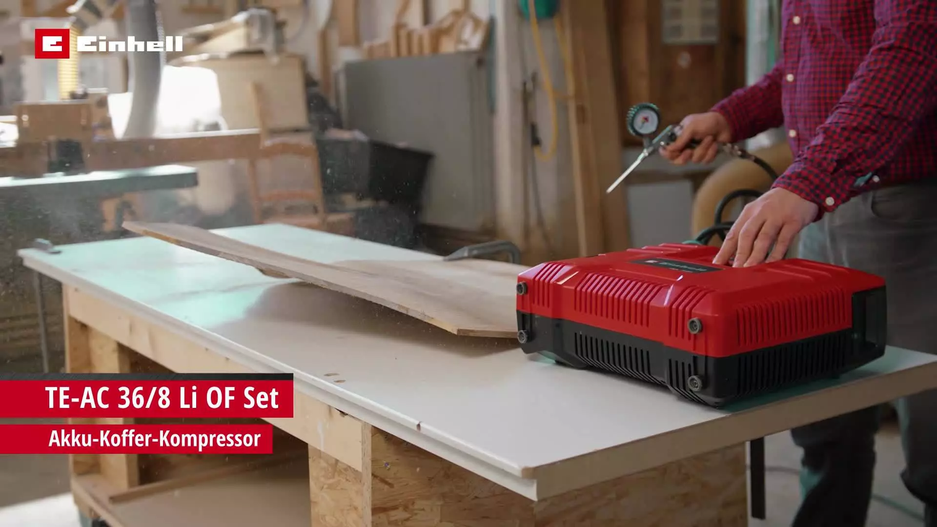 Der Einhell Akku-Koffer-Kompressor TE-AC 36/8 Li OF Set-Solo wird mit einem 2,5 Meter langen Druckluftschlauch mit Schnellkupplung, einem Reifenfüllmesser und einem Adapter zur Verwendung als Ausblaspistole geliefert. Außerdem ist ein 3-teiliges Adapter-Set zum Befüllen von Bällen, Reifen und Luftmatratzen im Lieferumfang enthalten. Sämtliches Zubehör findet in den integrierten Aufbewahrungsfächern Platz und ist dabei jederzeit griffbereit.